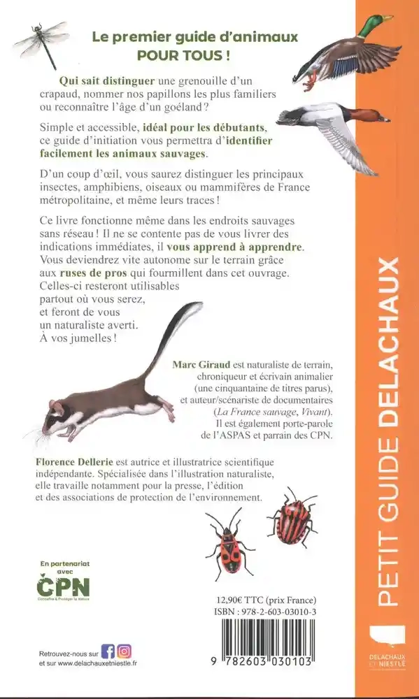 Reconnaître facilement les animaux est un guide pratique de 80 pages, rédigé par Marc Giraud et illustré par Florence Dellerie, destiné aux débutants souhaitant identifier aisément la faune sauvage de France métropolitaine. Publié par Delachaux et Niestlé, il offre des descriptions claires, des illustrations détaillées et des conseils d'observation pour enrichir vos sorties en nature.