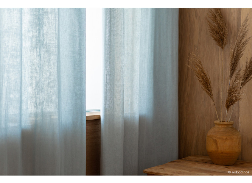 Le rideau Utopia Rivera Blue de Nobodinoz, en double gaze de coton bio, apporte élégance et douceur à votre intérieur tout en filtrant délicatement la lumière.