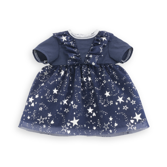 Habillez votre poupée Ma Corolle avec la Robe Chic bleu marine ornée d'étoiles argentées, idéale pour les soirées et événements spéciaux.