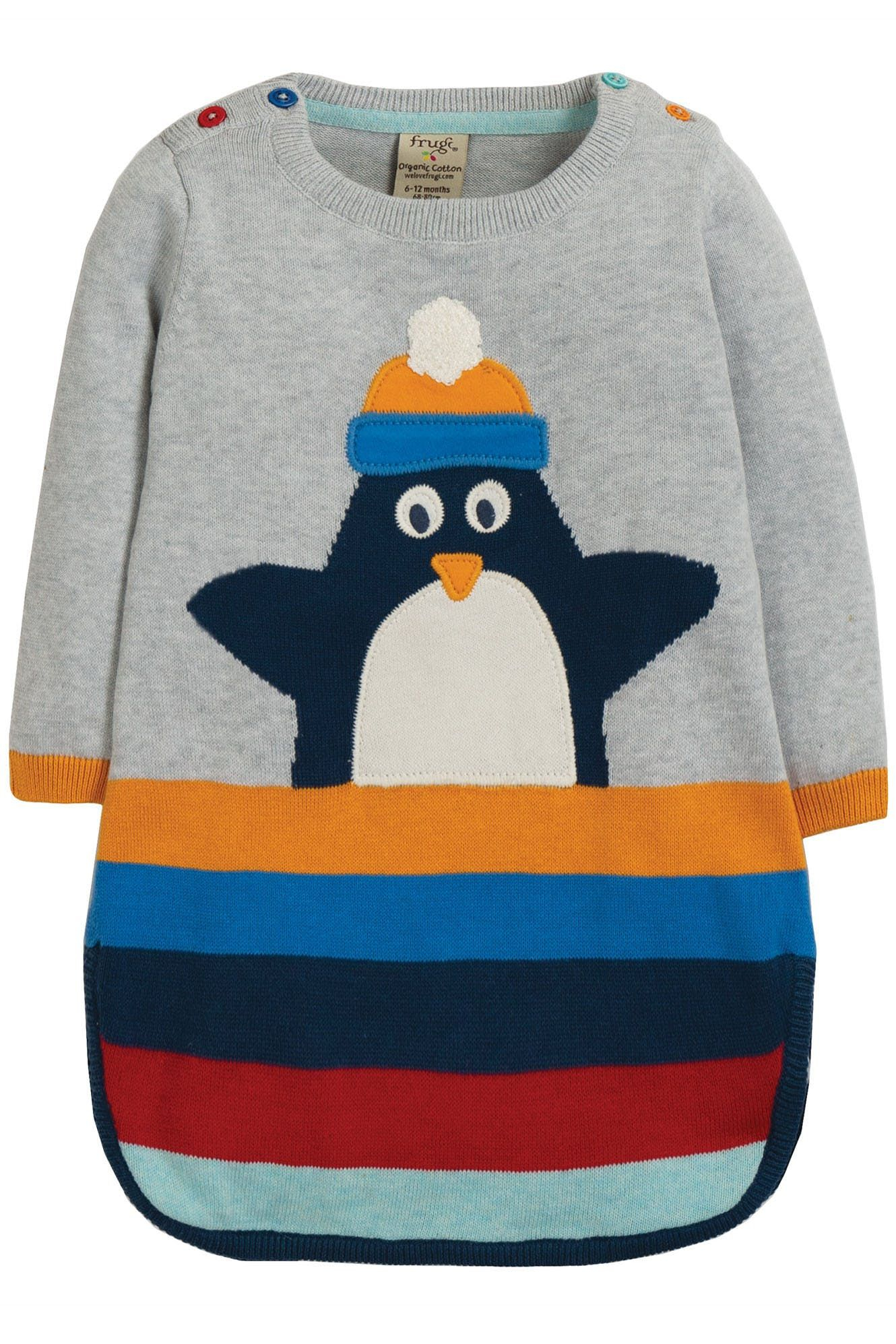 Fabriquée à partir de coton biologique magnifiquement doux, cette toute nouvelle robe en tricot à manches longues Kiri a un design pingouin sur le devant.