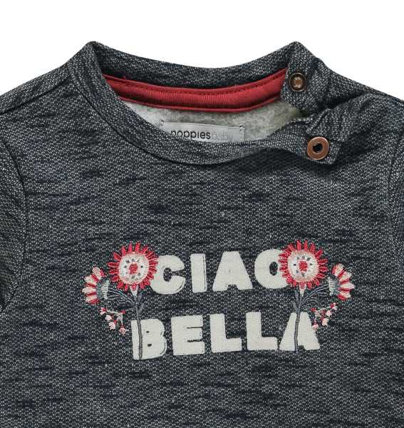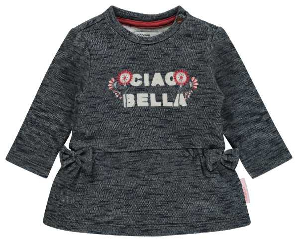 Robe Veron de Noppies en tissu sweat doux très confortable. La robe a des plis dans la taille et un texte brodé à l’avant. Les petits plis et les nœuds complètent le look. Combinez cette robe avec un collant épais rose.