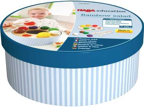 8 boules amusantes de toutes les couleurs roulent pêle-mêle dans une boîte : rouge comme des cerises, vert comme des haricots. Qui réussira à les pêcher et les placer sur les champs de couleur correspondants ? Le jeu compte quatre variantes dont une qui stimule la capacité à mémoriser. La 'salade colorée' constitue un défi amusant qui réunit des joueurs présentant divers niveaux d'habilités motrices et cognitives.