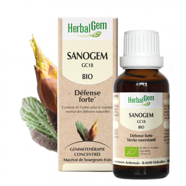SANOGEM contribue à freiner le développement des germes grâce à l’association des extraits de bourgeons de peuplier et d’aulne, principales sources végétales de la propolis. Les abeilles recueillent pour la production de leur propolis, presque exclusivement les résines de bourgeons de peuplier et d’aulne, riches en flavonoïdes. Cette propolis a entre autre pour les abeilles un rôle hygiénique en créant une couche protectrice contre les invasions microbiennes ou fongiques. Tandis que le peuplier était considéré par les anciens comme un arbre bouclier, l’aulne glutineux est une essence robuste et résistante à la pourriture.