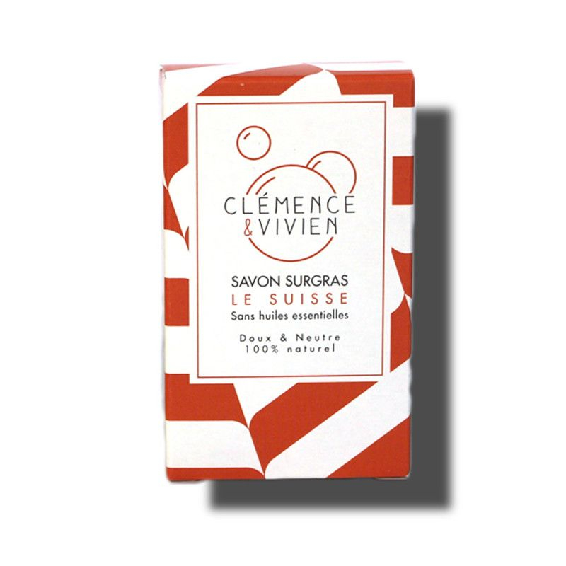 Le savon à froid Le Suisse de Clémence & Vivien est un savon surgras sans parfum, idéal pour les peaux sensibles. Enrichi en beurre de karité et huile de ricin, il hydrate et nourrit la peau en douceur. Convient à toute la famille, y compris aux femmes enceintes et aux enfants.