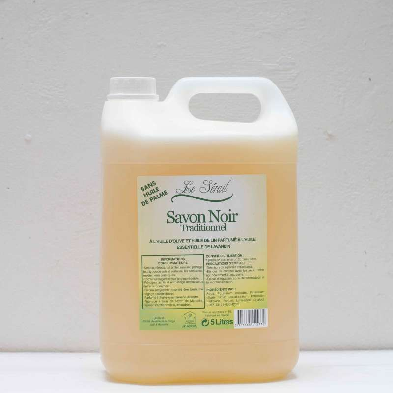 Le savon noir liquide est un produit ménager à base d'huile d'olive, d'huile de lin et d'huile d'acides gras végétaux, cuit artisanalement en chaudron. Ces huiles seront saponifiées (transformées en savon) lors de la fabrication.
