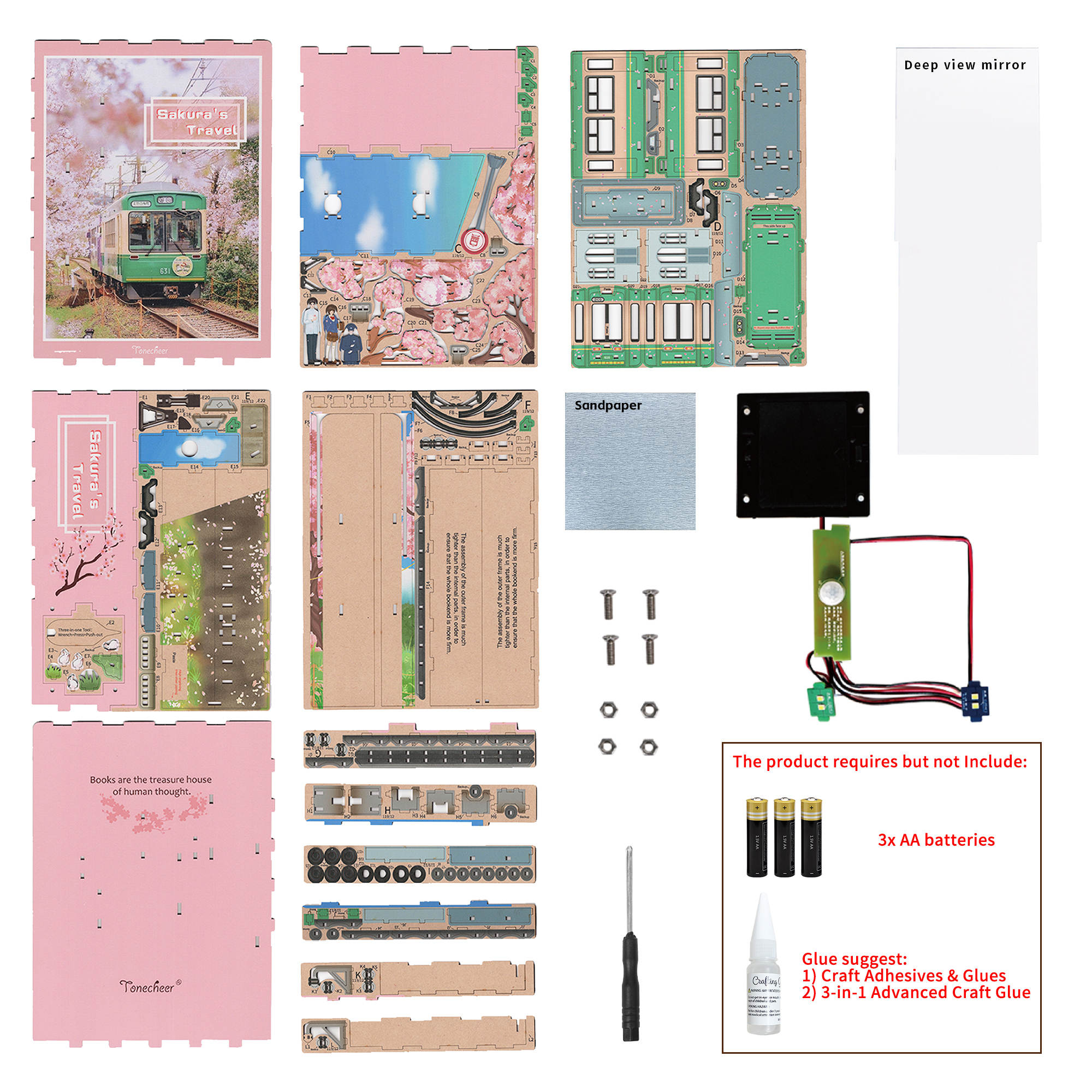 Assemblez le serre-livres DIY 'Sakura's Travel' de Tonecheer et recréez une scène japonaise pittoresque avec des cerisiers en fleurs et un tramway traditionnel. Ce kit en bois de 130 pièces, doté d'un éclairage LED activé par capteur, est parfait pour les amateurs de loisirs créatifs et de décoration.