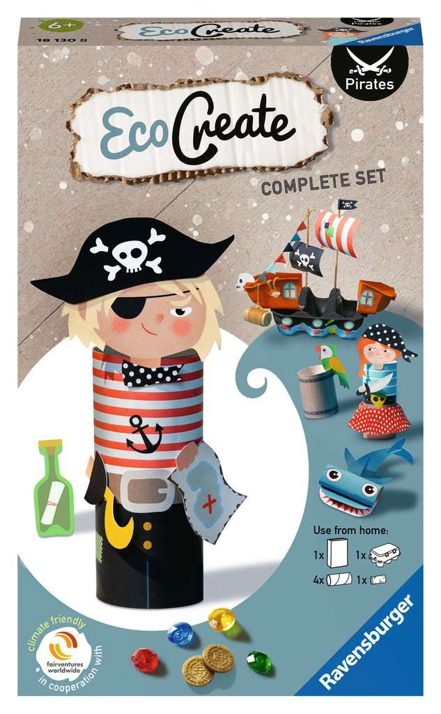 Un vrai gain de temps et d'énergie pour les parents ! Parmi 4 thèmes de la collection Mini, l’univers des pirates saura ravir les enfants. A partir d’une boite à œuf ou de rouleaux de papier, les enfants créent écologiquement : 1 bateau, 2 figurines garçon et fille, 1 requin et 1 perroquet. Ce produit est composé de matériaux issus de forêts bien gérées certifiées FSC®, de matériaux recyclés et de matériaux issus d’autres sources contrôlées (FSC-C111262). A partir de 6 ans.