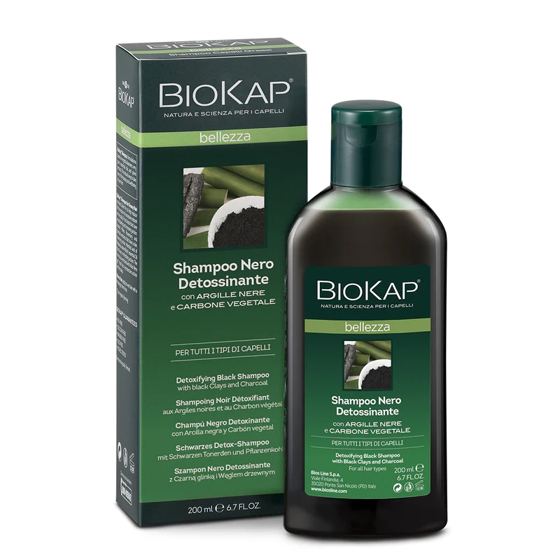 La pollution, le smog, les impuretés et l'excès de sébum peuvent s'accumuler sur votre cuir chevelu, réduisant le volume et la brillance des cheveux. Le Shampooing Noir Détoxifiant est spécifiquement formulé pour purifier votre cuir chevelu et réduire les démangeaisons, en redonnant vitalité, bien-être et légèreté à la peau et aux cheveux. Adapté à tous les types de cheveux, ce shampooing noir combine l'effet détoxifiant et purifiant des argiles noires avec les propriétés d'absorption des impuretés et des saletés du charbon de bois. Un dérivé végétal de Xylitol et de Panthénol contribue à réduire les démangeaisons et les rougeurs, tandis que le menthol et l'huile essentielle de romarin bio hydratent et rafraîchissent, procurant une sensation de confort et de bien-être à la peau et aux cheveux. La couleur foncée du shampooing est le résultat de sa poudre de charbon de bois. Il se rince et ne modifie pas la couleur de vos cheveux, qu'ils soient teints ou naturels.