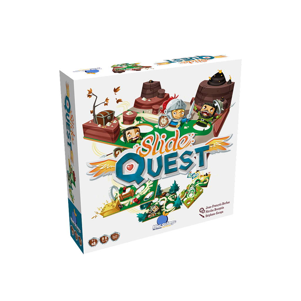 Slide Quest est un jeu de société coopératif où les joueurs aident un chevalier à traverser des niveaux semés d'embûches en inclinant le plateau. Convient aux joueurs de 7 ans et plus.