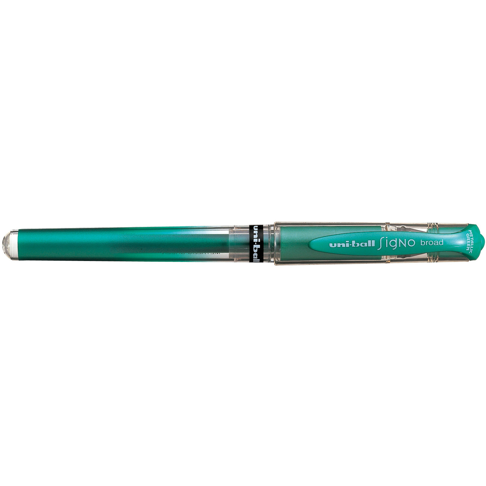 Stylo roller - Vert metallic - Signo Broad grip - Pointe large - Uni-ball