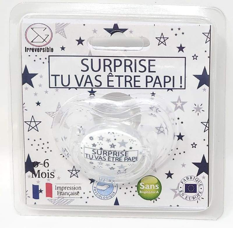 Sucette Tétine " Surprise tu vas être papi ! " Irréversible Bijoux