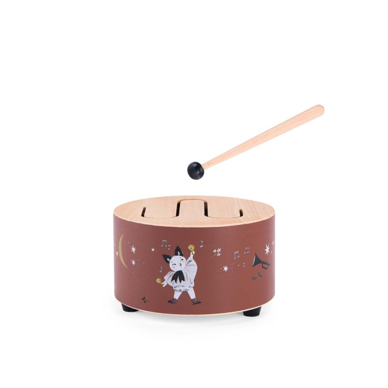 Le Tambour en bois 'Après la pluie' de Moulin Roty est un instrument ludique conçu pour éveiller la sensibilité musicale des enfants dès 18 mois. Facile à manipuler, il offre une variété de sons selon les zones de frappe, avec ou sans baguette. Fabriqué en bois de hêtre, il allie robustesse et esthétique.