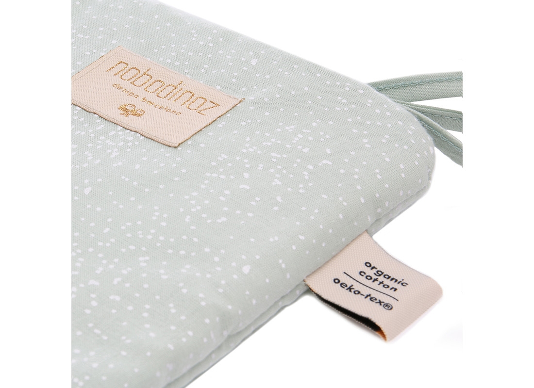Le tour de lit en coton bio White Bubble/Aqua de Nobodinoz assure sécurité et confort à votre bébé tout en ajoutant une touche élégante à sa chambre.