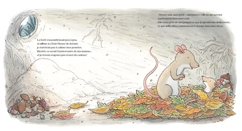 Dans un petit terrier niché au cœur de la forêt, un souriceau courageux entreprend une quête extraordinaire : trouver le cadeau parfait pour sa maman. Que pourrait-il lui offrir pour lui montrer tout son amour ? Peut-être une pomme de pin pleine de pignons, une magnifique fleur ou encore une plume duveteuse ?
