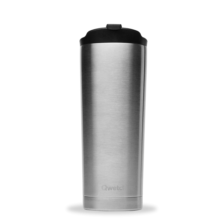 Le Travel Mug isotherme en inox 470ml de Qwetch maintient vos boissons chaudes pendant 6 heures et froides pendant 12 heures. Doté d'un couvercle étanche avec ouverture facile, il est idéal pour une utilisation quotidienne.