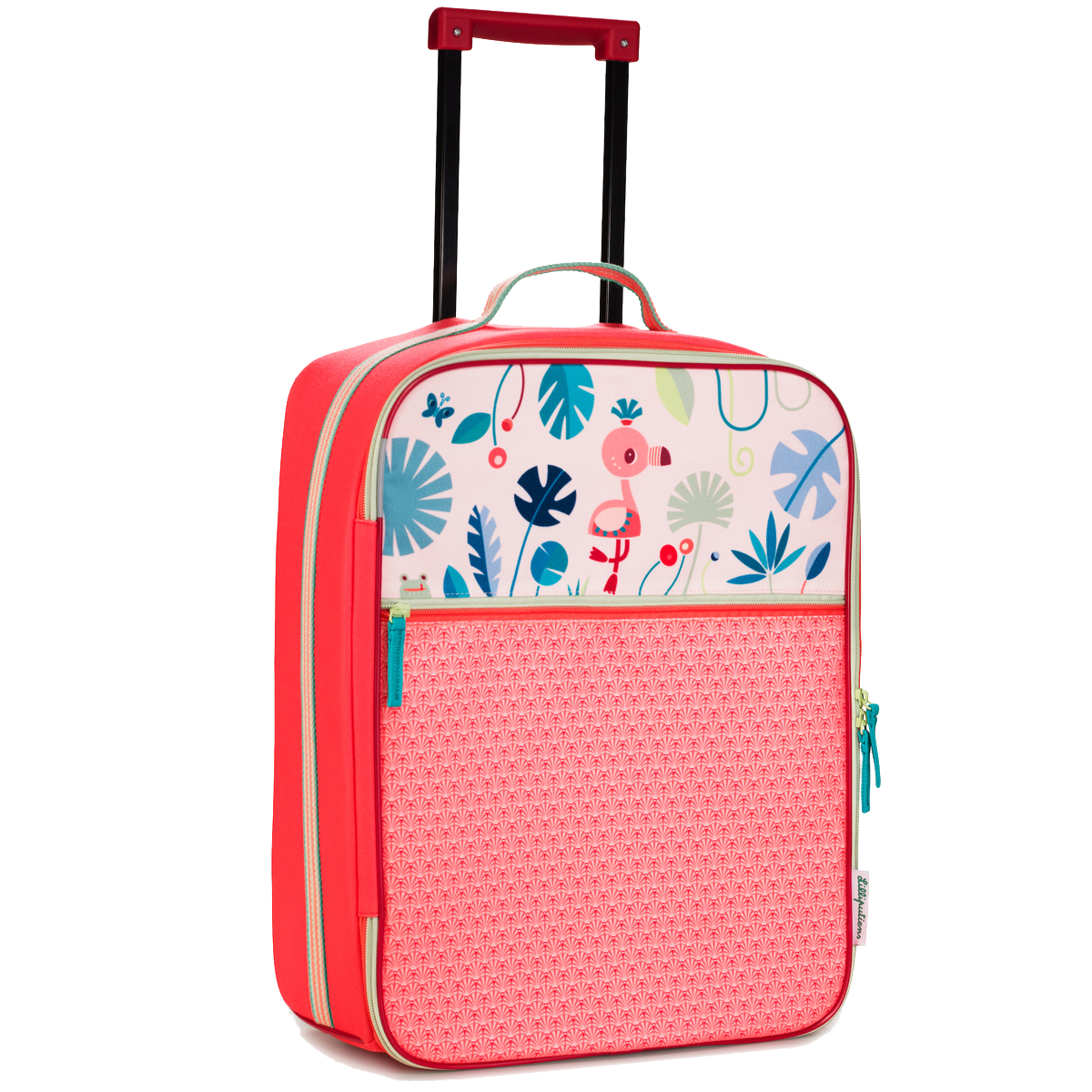 Le Trolley Anaïs de Lilliputiens est une valise à roulettes colorée et pratique, idéale pour les voyages des enfants. Dotée d'un grand compartiment avec sangles, d'une poche frontale zippée et d'une poignée ajustable, elle offre confort et fonctionnalité. Dimensions : 45 x 33 x 16 cm.