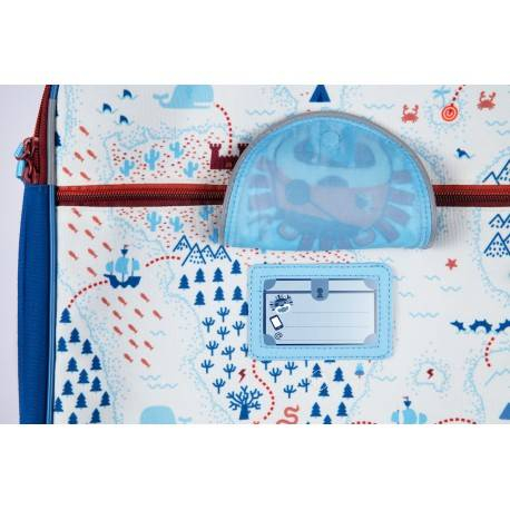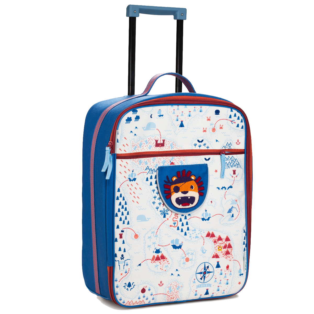 Le Trolley Jack le Pirate de Lilliputiens est une valise à roulettes colorée et imperméable, idéale pour les enfants dès 2 ans. Avec son grand compartiment, sa poche avant spacieuse et sa poche latérale pour bouteille, il est parfait pour les week-ends et les vacances.