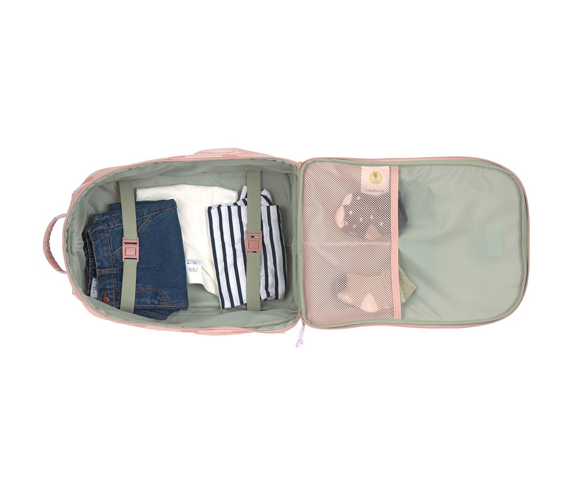 La valise à roulettes Pattern Party Rose de Lässig est le compagnon de voyage idéal pour les enfants dès 3 ans. Conçue pour allier praticité et style, elle offre de nombreuses fonctionnalités adaptées aux besoins des plus jeunes voyageurs.