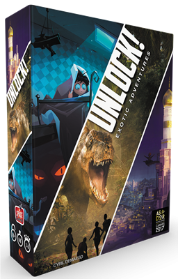 Unlock! 4: Exotic Adventures est un jeu de cartes coopératif inspiré des escape rooms, proposant trois scénarios captivants pour 1 à 6 joueurs dès 10 ans.
