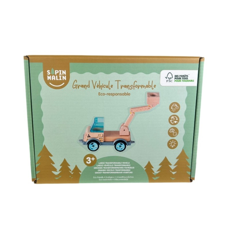 Le Véhicule Transformable - Grand Camion avec Nacelle de Sapin Malin est un jouet en bois de 17 cm avec pièces amovibles, permettant aux enfants dès 3 ans de créer leur propre design et de l'assembler avec d'autres véhicules de la collection. Fabriqué à partir de matériaux durables, il stimule la créativité et la motricité tout en respectant l'environnement. ([shop.pichon.fr](https://shop.pichon.fr/p/camion-benne-transformable-17-cm-sapin-malin-mig102209821?utm_source=openai))