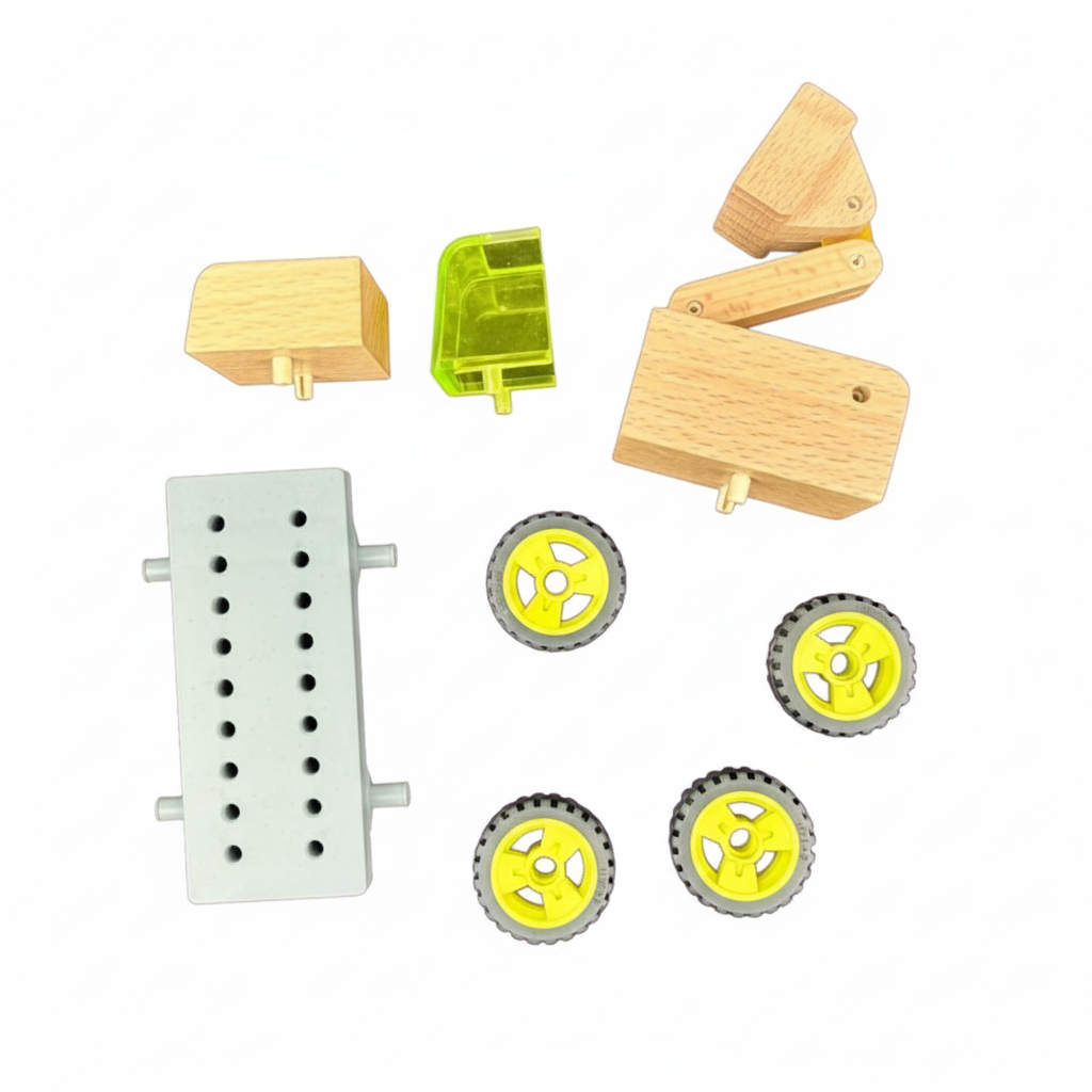 Le Véhicule Transformable - Mini Camion avec Nacelle de Sapin Malin est un jouet en bois innovant conçu pour stimuler la créativité et la motricité des enfants dès 3 ans. Avec ses pièces amovibles, il permet des assemblages personnalisés et est compatible avec d'autres véhicules de la collection.